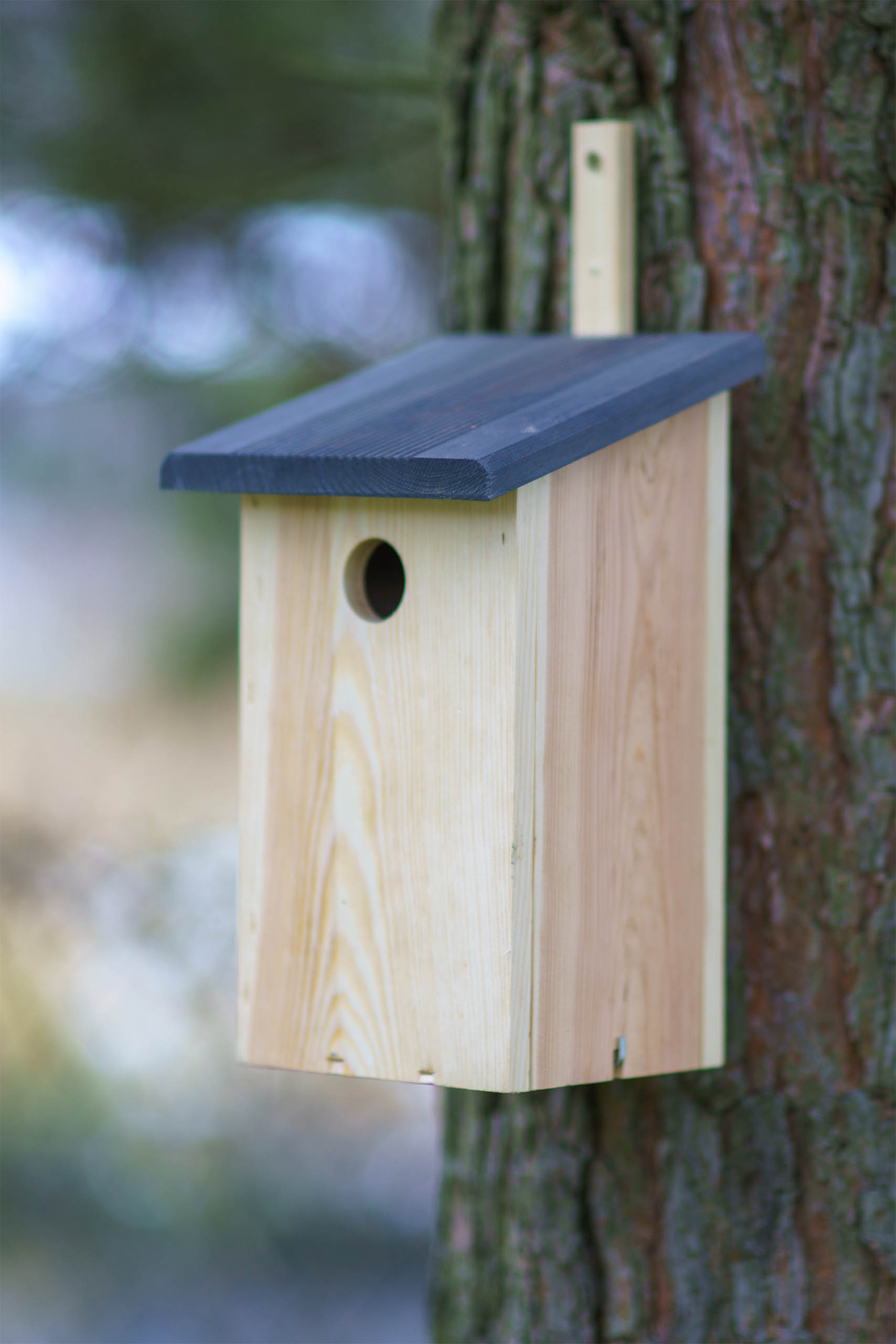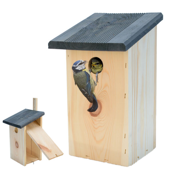 Budka lęgowa dla sikorek z otwieranym wejściem.