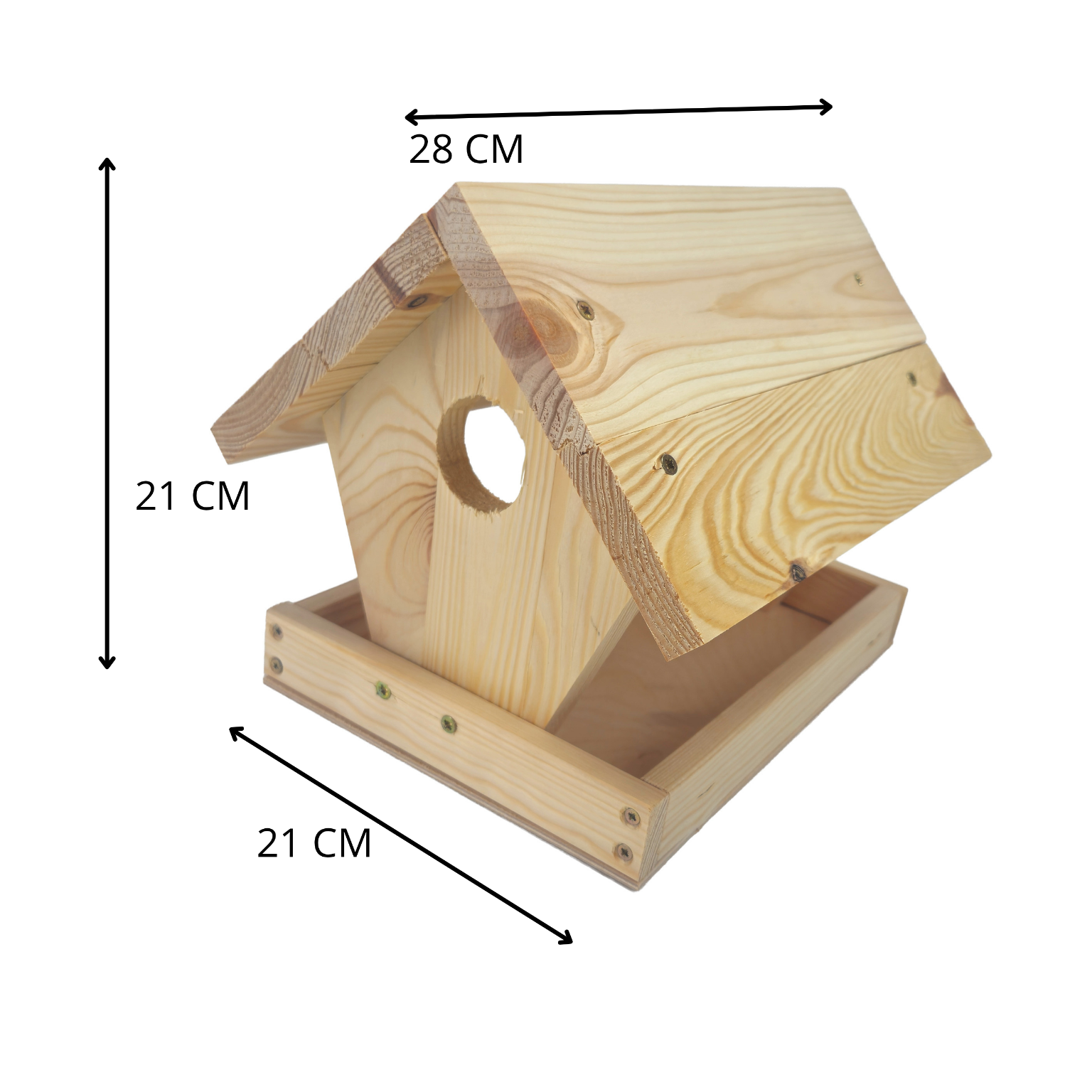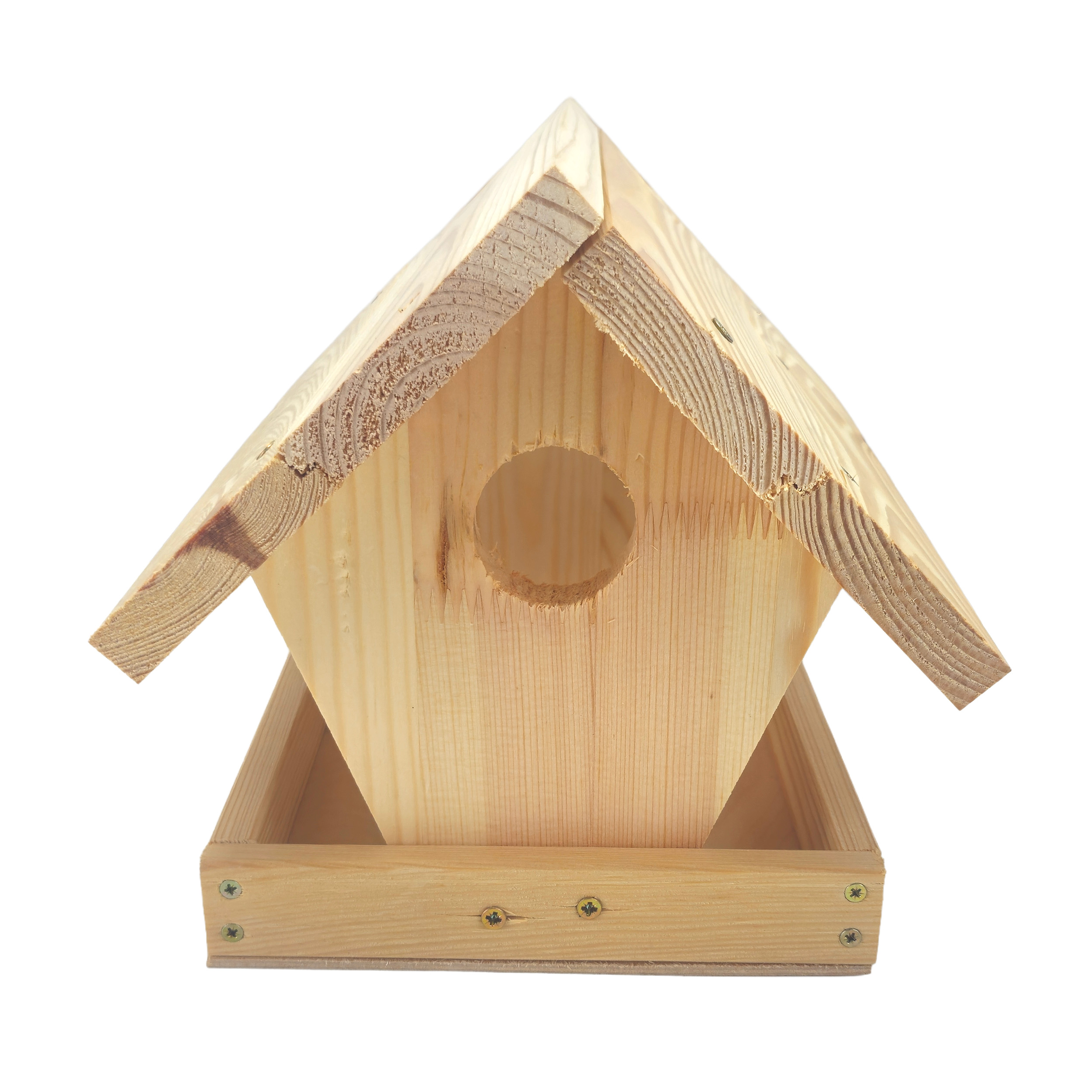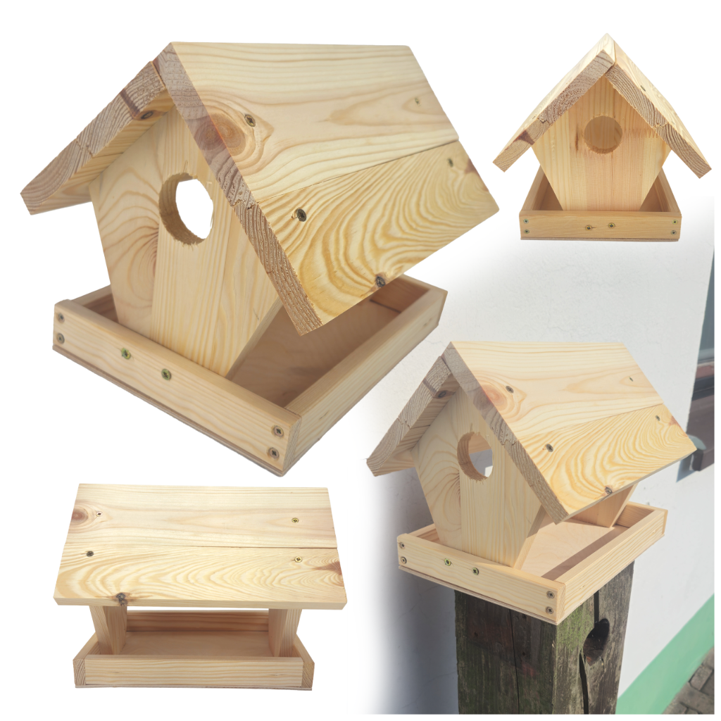 Drewniany karmnik DIY to idealny zestaw dla osób lubiących majsterkować oraz wspólnie tworzyć z dziećmi. Produkt sprzedawany jest w formie niezmontowanej – elementy należy samodzielnie nawiercić, dopasować i skręcić wkrętami.