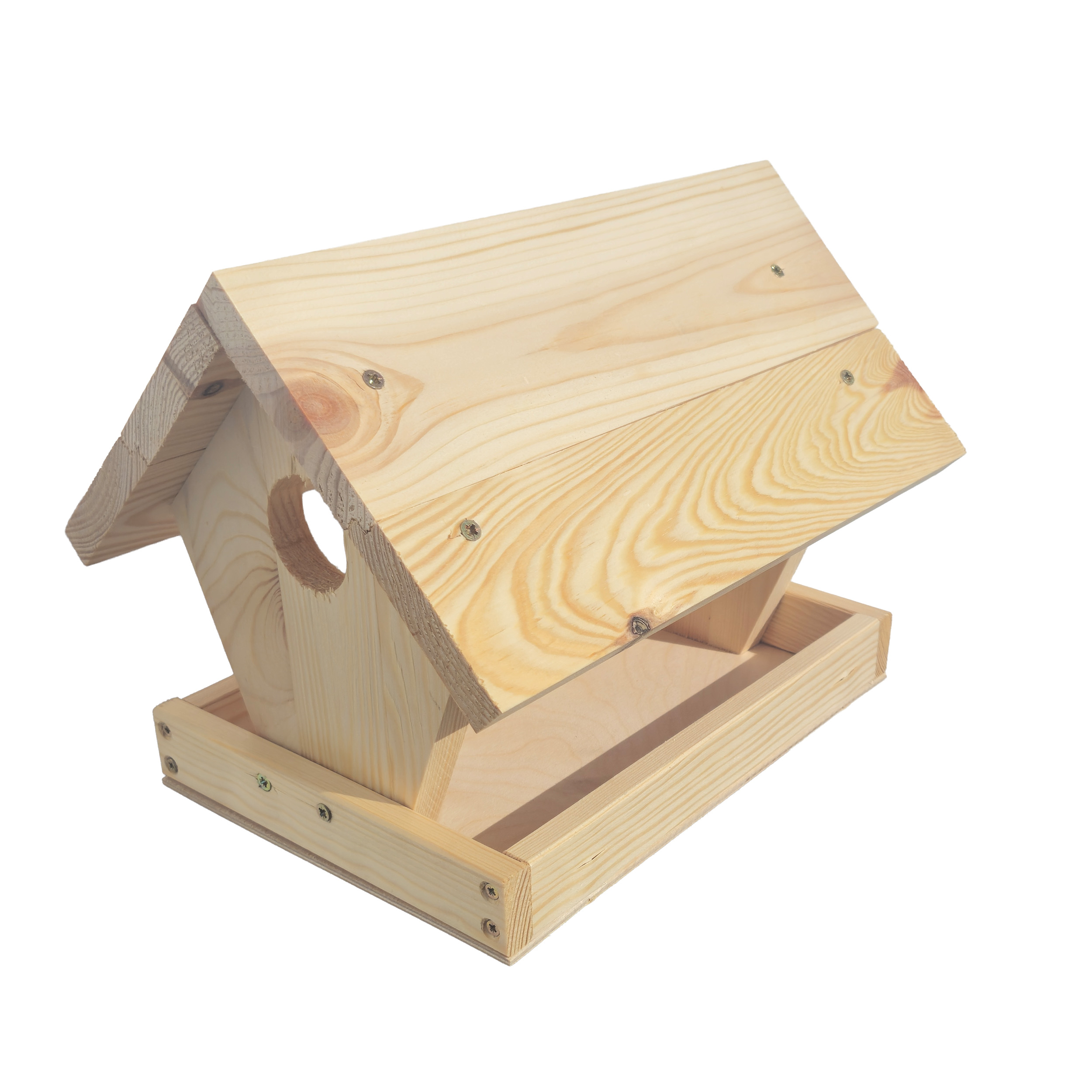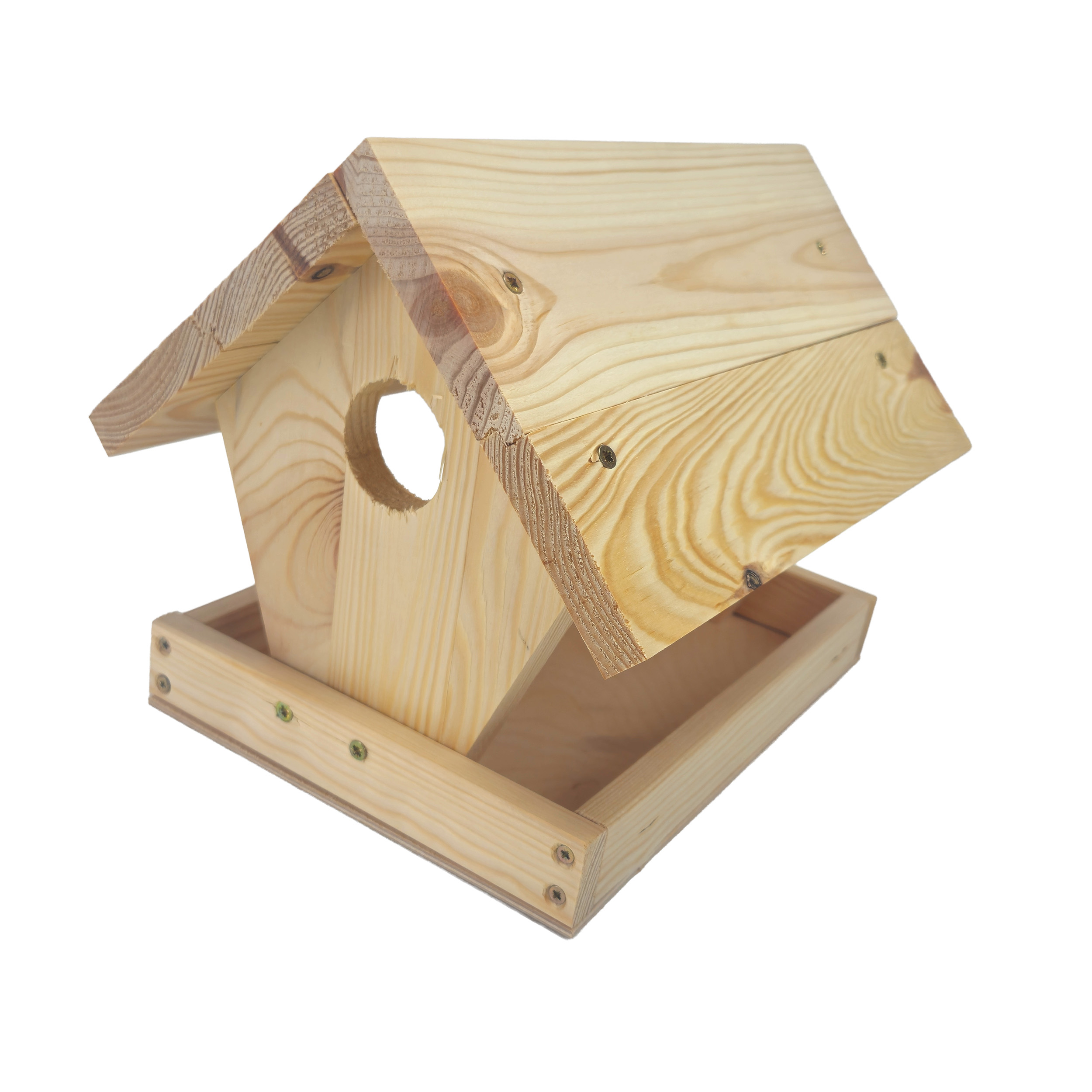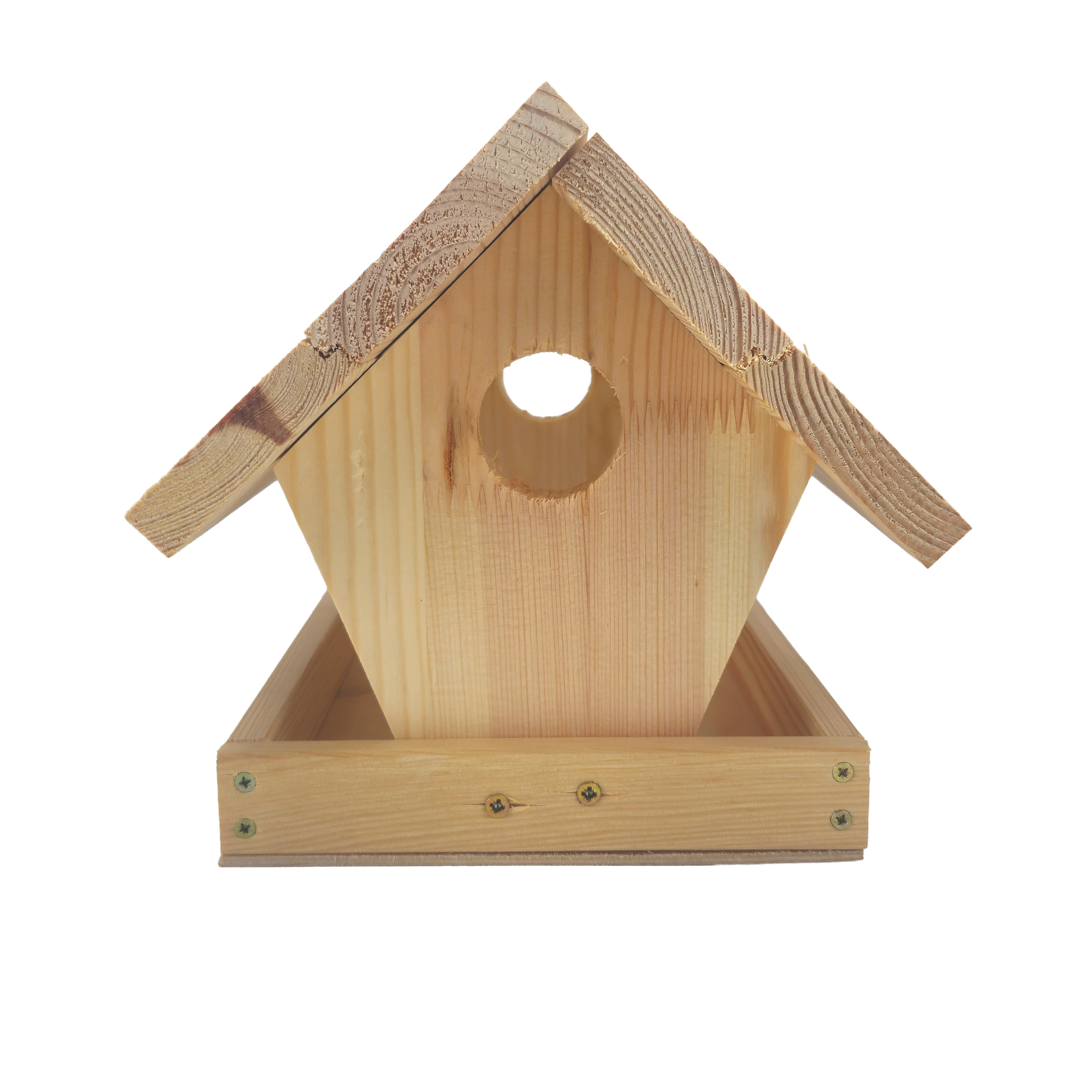 Drewniany karmnik DIY to idealny zestaw dla osób lubiących majsterkować oraz wspólnie tworzyć z dziećmi. Produkt sprzedawany jest w formie niezmontowanej – elementy należy samodzielnie nawiercić, dopasować i skręcić wkrętami.
